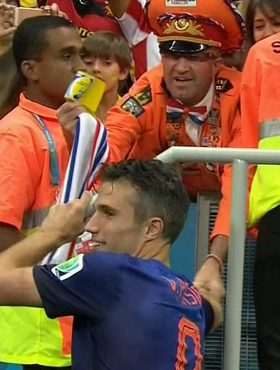 Van Persie, üçüncülük madalyasını turnuva başından beri maçlara Dünya Kupası maketiyle gelen taraftara verdi